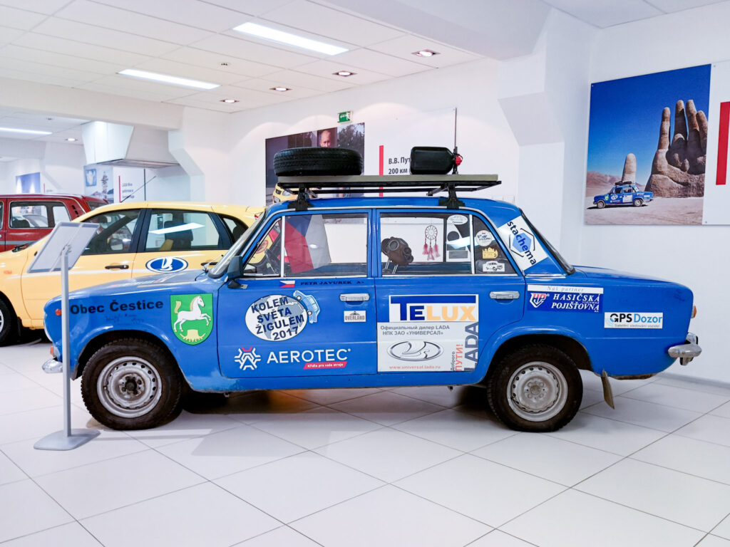 Warum der Stop in Togliatti? — Togliatti ist die Lada-Stadt. Hier liefen die legendären Niva und Shiguli vom Band. Natürlich möchte ich einmal das Fabrikmuseum besuchen. Das Museum ist klein, aber interesant: Neben allen möglichen Serienfahrzeugen und Prototypen gibt es auch Autos mit besonderer Geschichte zu bestaunen: Zum Beispiel ein Niva, der bei der UdSSR Antarktis-Station im Einsatz war. Für mich das Highlight ist aber der alte Shiguli, mit dem zwei Tschechen 50.000 Kilometer quer durch Europa, Asien, Nord- und Südamerika fuhren. Ich bin ja der Meinung, dass Overlander viel zu viel Wind um ihre Vehikel machen. Die kleine Sowjet-Limousine ist der beste Beweis, dass es keine teuren „Expeditions“mobile braucht, wenn man die Welt sehen möchte.