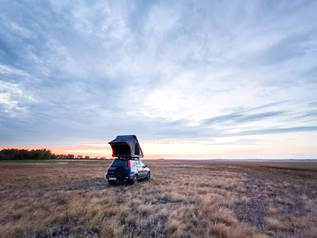Auf zur letzten Etappe durch Russland! Ich fahre noch weiter bis nach Orenburg am Ural-Fluss. Wo Europa aufhört und wo Asien anfängt, darüber gibt es viele Meinungen. Eine gängige russische Definition besagt, dass die Grenze entlang de Flusses Ural verläuft. In Orenburg muss ich natürlich ein paar Fotos vom Honda vor der Säule machen, die die Grenze markieren soll. Viel lustiger als das Monument: Die Stadt hat einen Sandstrand am Fluss, und so planschen die Locals zwischen den Kontinenten. Ich finde etwas südlich der Stadt einen malerischen Übernachtungsplatz. Morgen will ich nach Kasachstan weiter. Ich bin gespannt, ob die Ausreise so problemlos wird, wie die Einreise.
